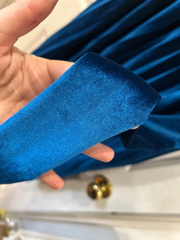 Designed in blue, this open-back midi dress features an elasticated fit and velvet effect fabric.