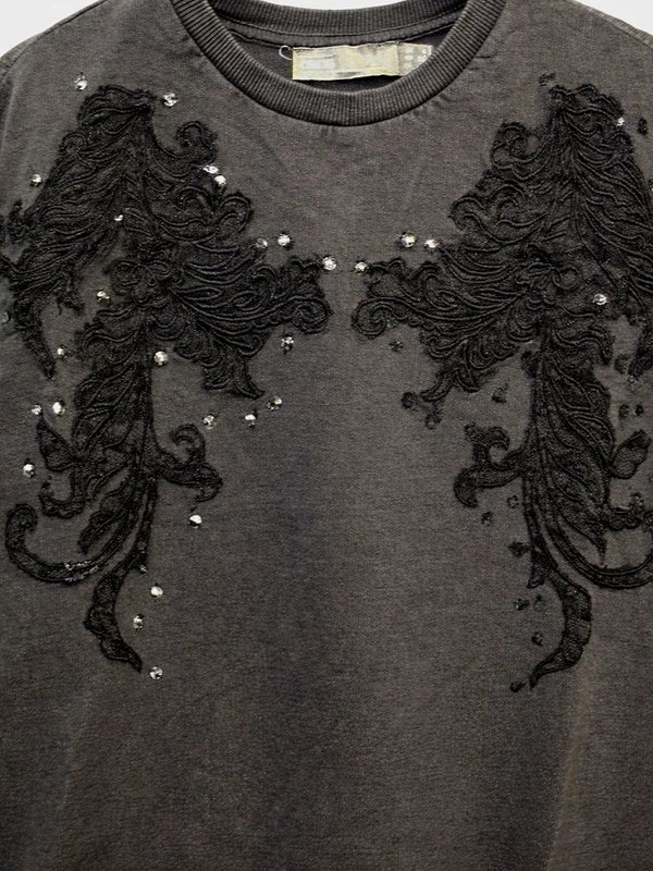 Charcoal grey, oversized pure cotton sweatshirt by ASOS with intricate black embroidery and rhinestones. Perfect for a relaxed, fashion-forward look.