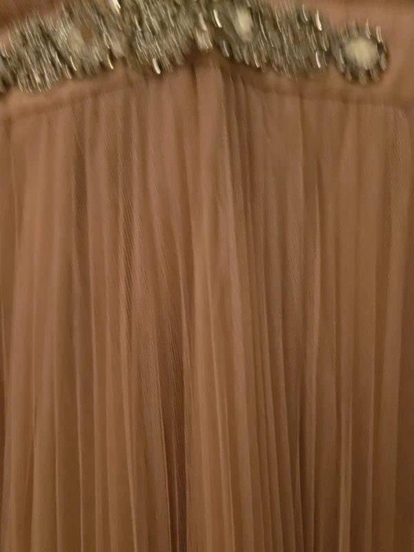 Rose Tulle Maxi Dress from ASOS. Designed for a wedding, this maxi dress features a sheer tulle fabric with rhinestone embellishments. The dress has a strapless neckline and a full skirt for a dramatic look. Perfect for special occasions like weddings and evening events.