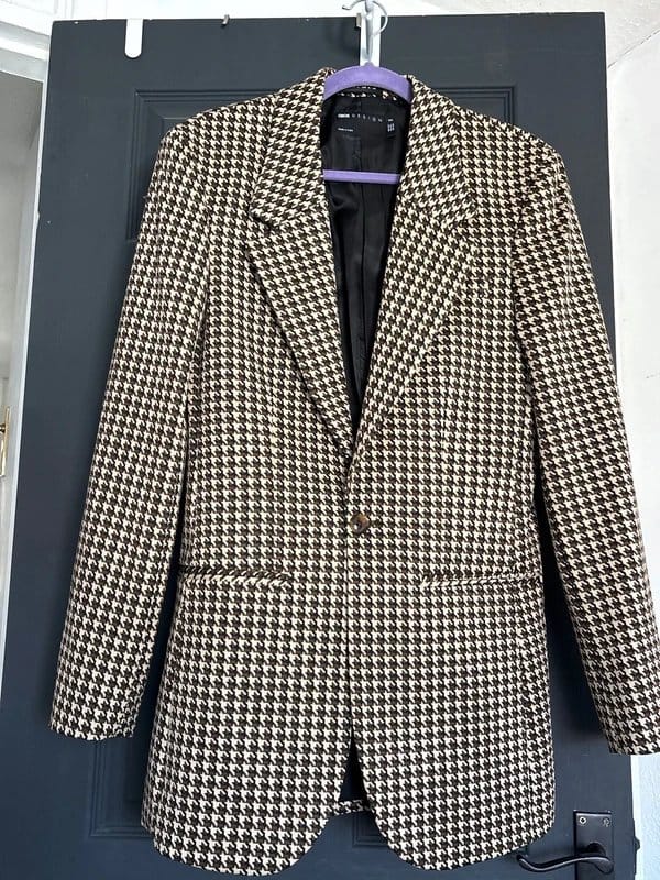 The ASOS Brown Houndstooth Slim Blazer is available in sizes M.