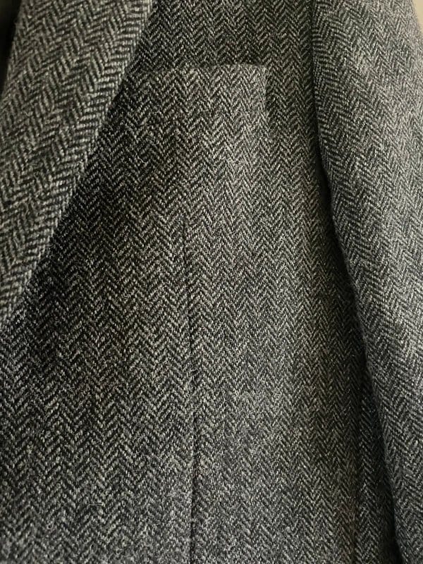 Stylish ASOS slim fit men's blazer jacket in grey herringbone fabric. Features a classic chest measurement of 38 inches/96 cm. Perfect for smart-casual occasions.