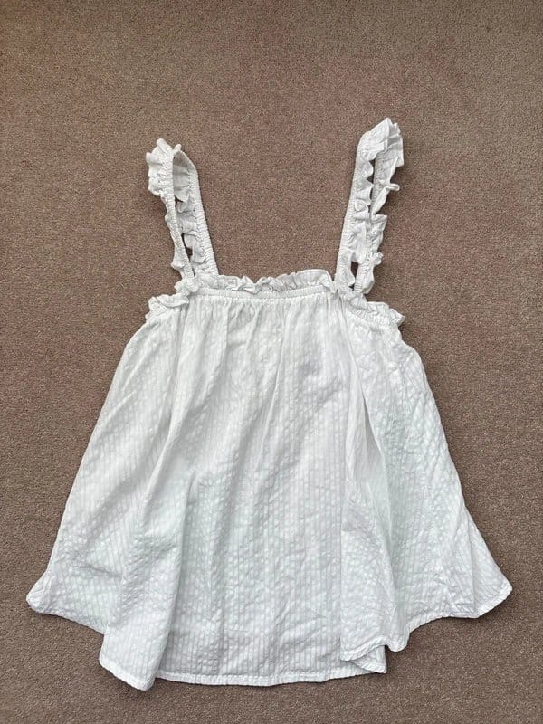 “Pair with high-waisted white shorts and white sandals for a beach-ready look.”