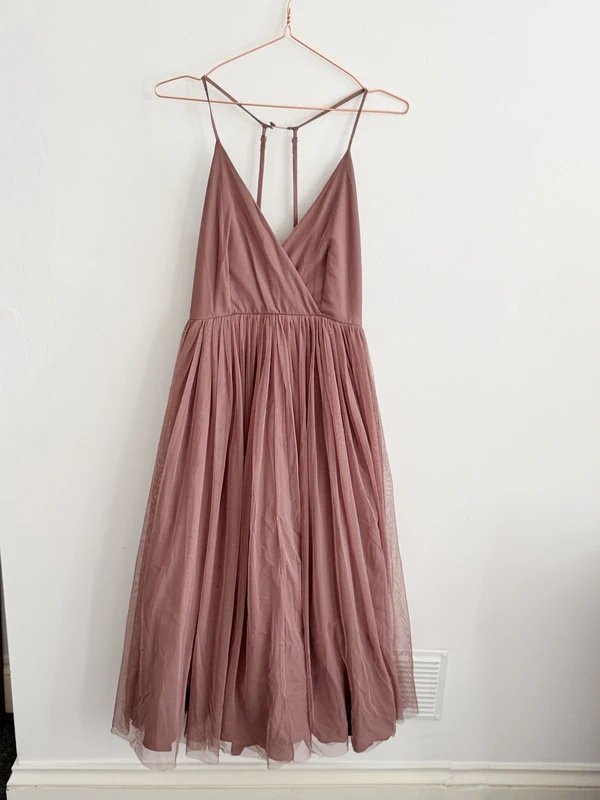 The ASOS Strappy Tulle Prom Dress in Rose is available in sizes S.