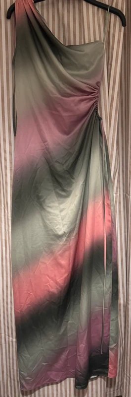 The ASOS Ombré Silk Maxi Dress with One Shoulder is available in sizes M.