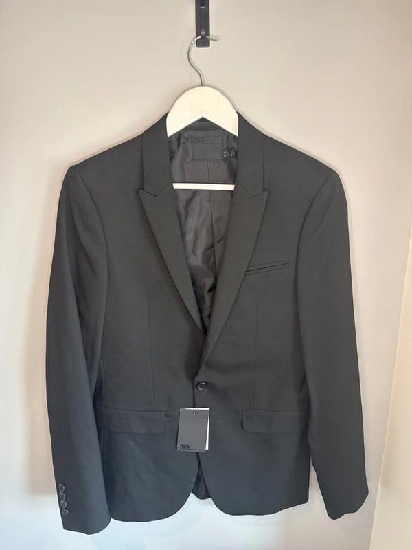 “Pair with a black dress shirt and dark trousers for a sharp office look, or wear with a white shirt and dark jeans for a more relaxed formal event.”