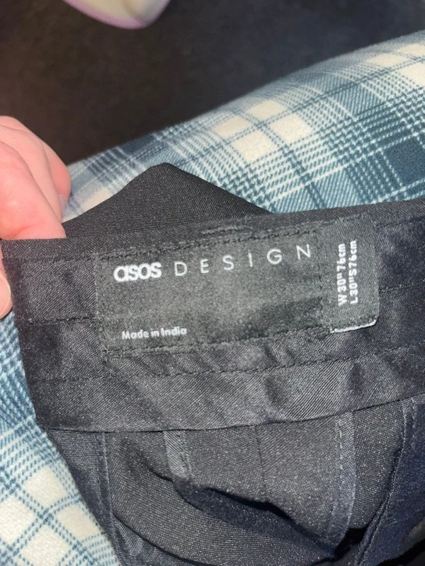 The ASOS Slim Fit Suit Trousers in Black is available in sizes L.