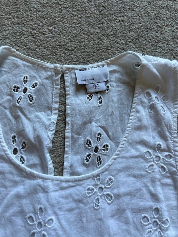 The ASOS White Embroidered Jumpsuit is available in sizes S.