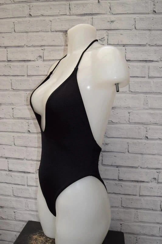 Crafted for a striking look, this black halter neck plunge swimsuit exudes modern elegance, perfect for beach outings or poolside lounging.