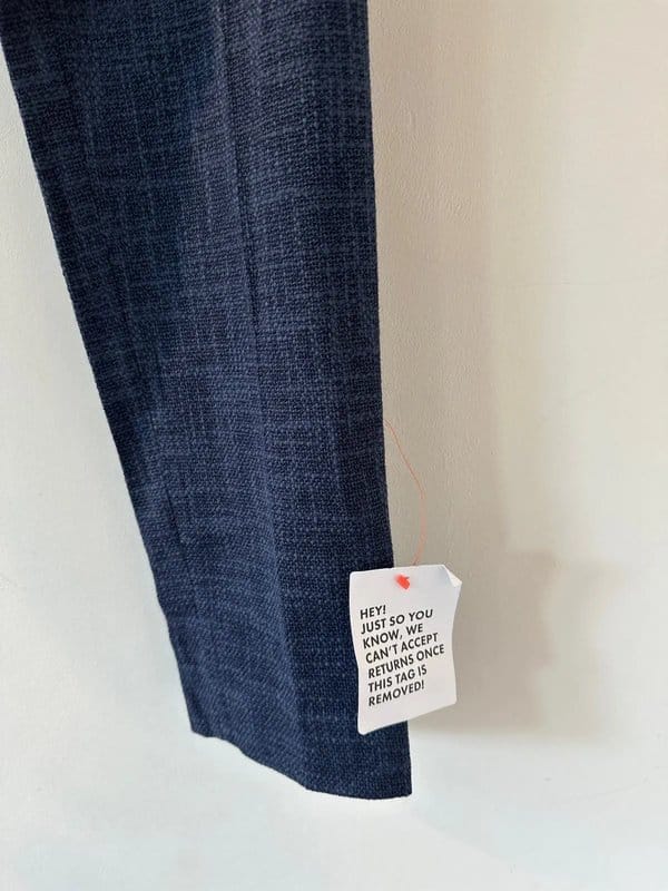 Stylish ASOS tailored navy trouser in a classic straight leg fit. Made from a textured cotton-polyester blend, these trousers offer a comfortable yet structured look. Perfect for smart-casual occasions.