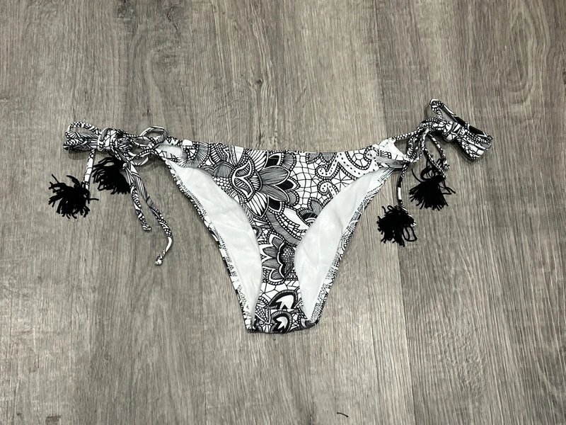 The ASOS Black and White Ruched Tie Side Bikini Bottoms is available in sizes L.