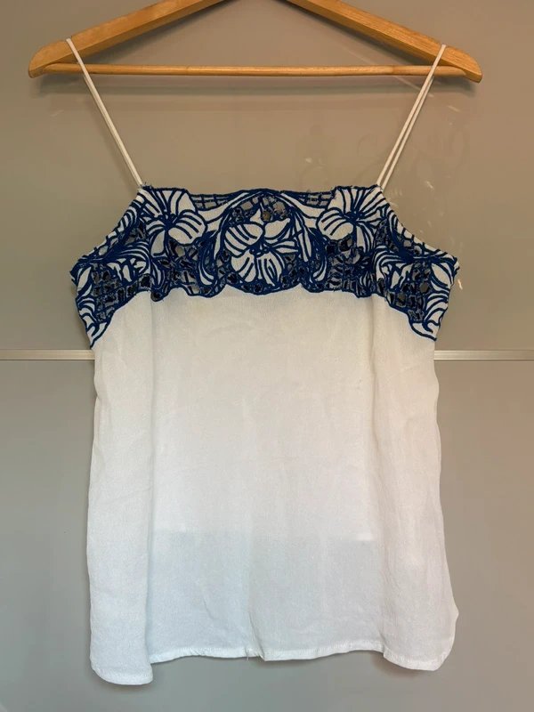 Stunning top by ASOS with a lace detail in white and blue. Perfect for casual outings.