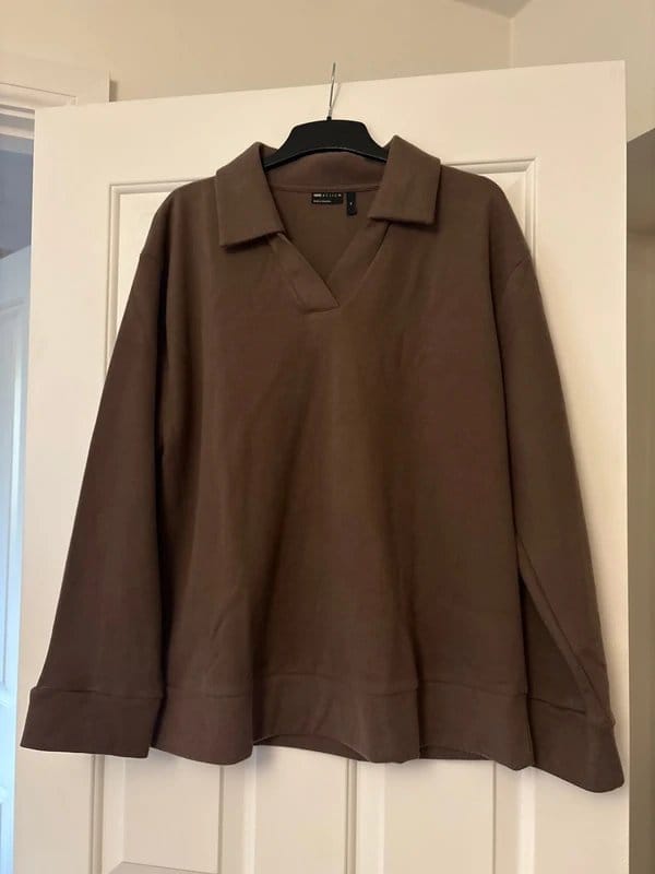 “Pair this top with high-waisted dark wash jeans and white sneakers for a laid-back, everyday look.”