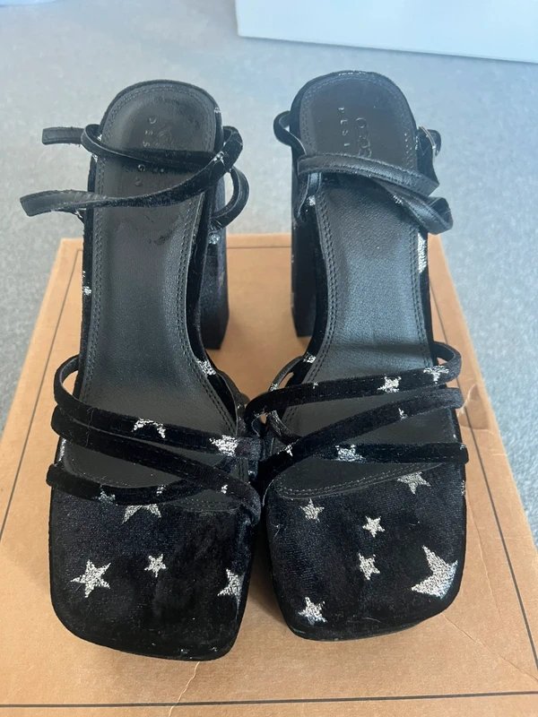Featuring a velvet star print, these platform heels from ASOS come in a striking black finish. Perfect for adding a touch of glamour to any outfit.