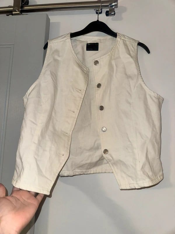 The ASOS Cream Cotton Waistcoat is available in sizes M.