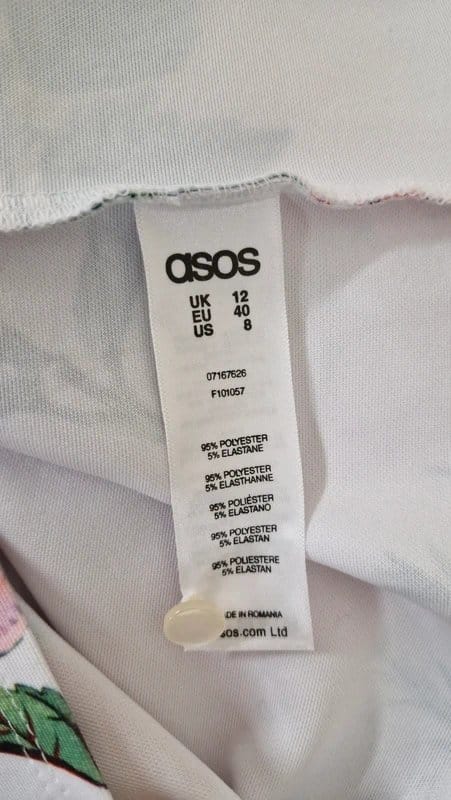 The ASOS White Floral Long Sleeve Dress Size 12 is made from polyester, elastane.