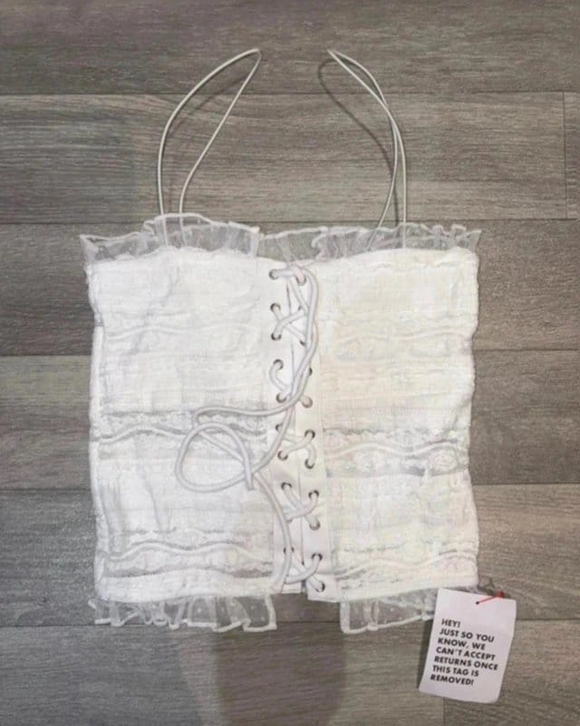 The ASOS White Lace Corset Detail Cami Top is available in sizes S.