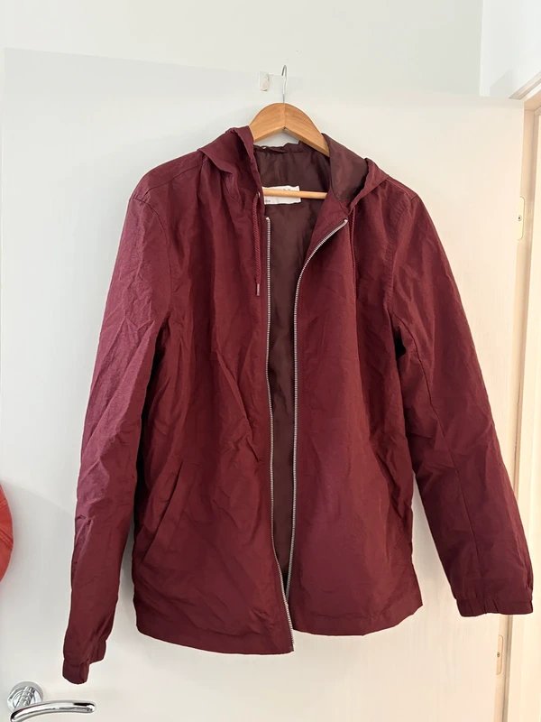 The ASOS Burgundy Windbreaker is available in sizes M.