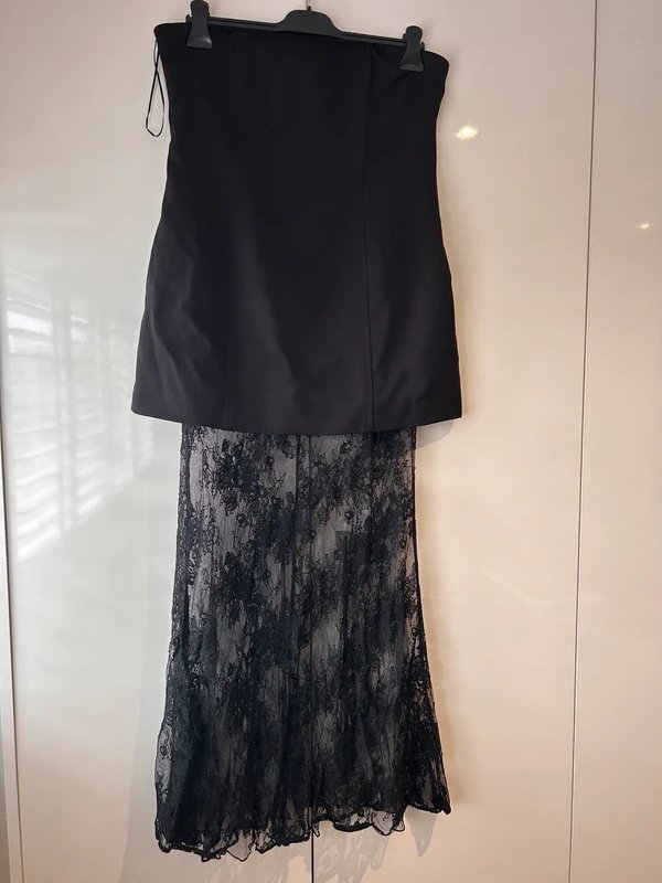 Featuring a bandeau corset style with lace maxi detailing, this dress exudes elegance and allure. Ideal for evening events or special occasions.