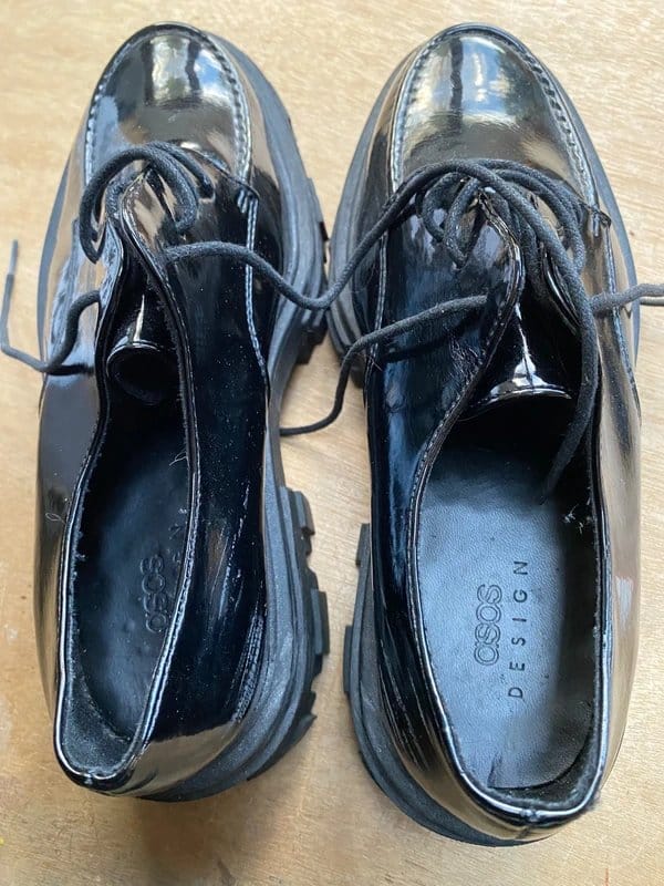 The ASOS Women's Chunky Black Patent Shoes is made from patent leather, rubber.