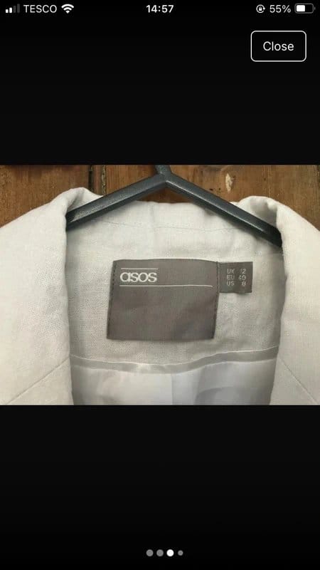 View Vinted's returns policyStylish white linen blazer from ASOS. Lined and flattering fit. Perfect for special occasions or a chic everyday look.