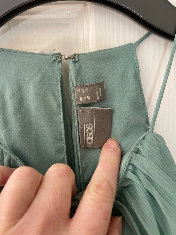 The ASOS Sage Green Halter Maxi Dress is available in sizes M.