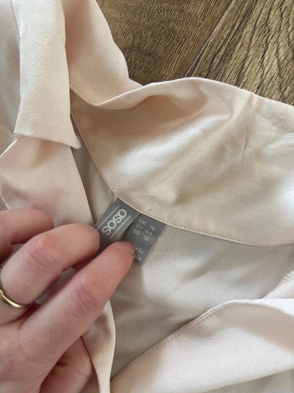The ASOS Silk Blouse in Apricot is available in sizes L.