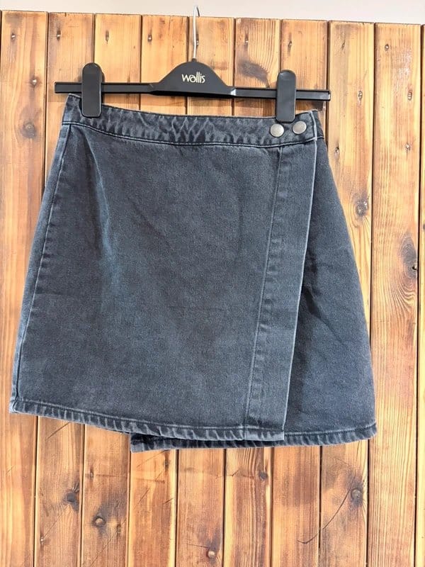 The ASOS Black Denim Wrap Skirt is available in sizes S.