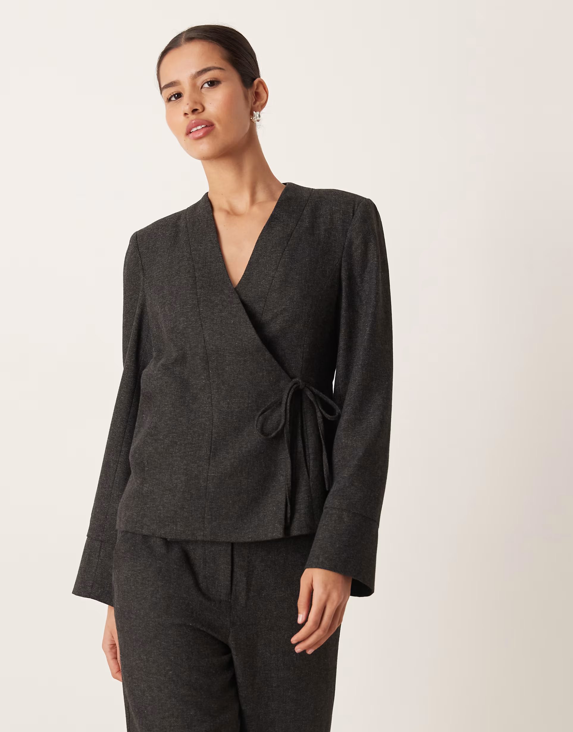 The ASOS AWARE Wrap Blazer Co-ord in Dark Grey Melange is ideal for evening, formal, work.