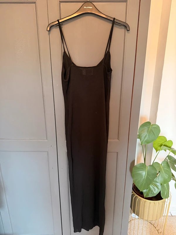 The ASOS Crochet Back Fine Knit Midi Dress in Black is available in sizes S.