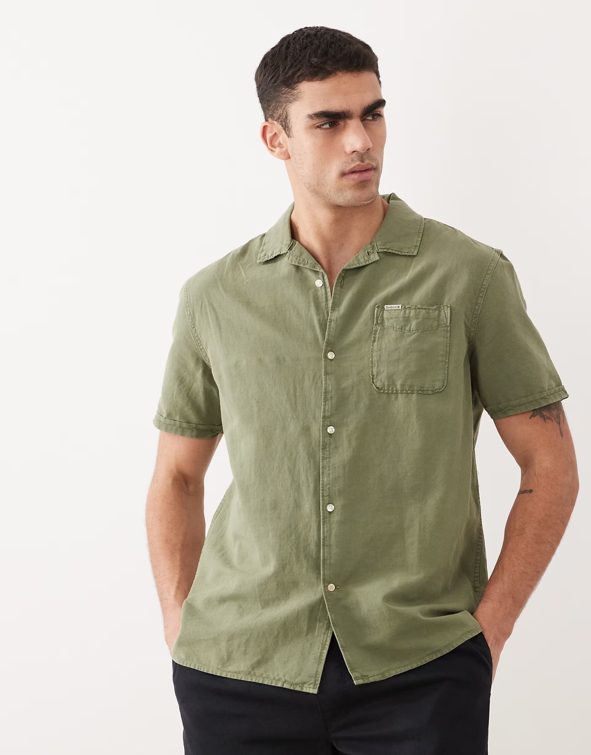 The ASOS Barbour Landkey Short Sleeve Shirt in Khaki is available in sizes XXXL, XXL, XL, XS, L, M, S.