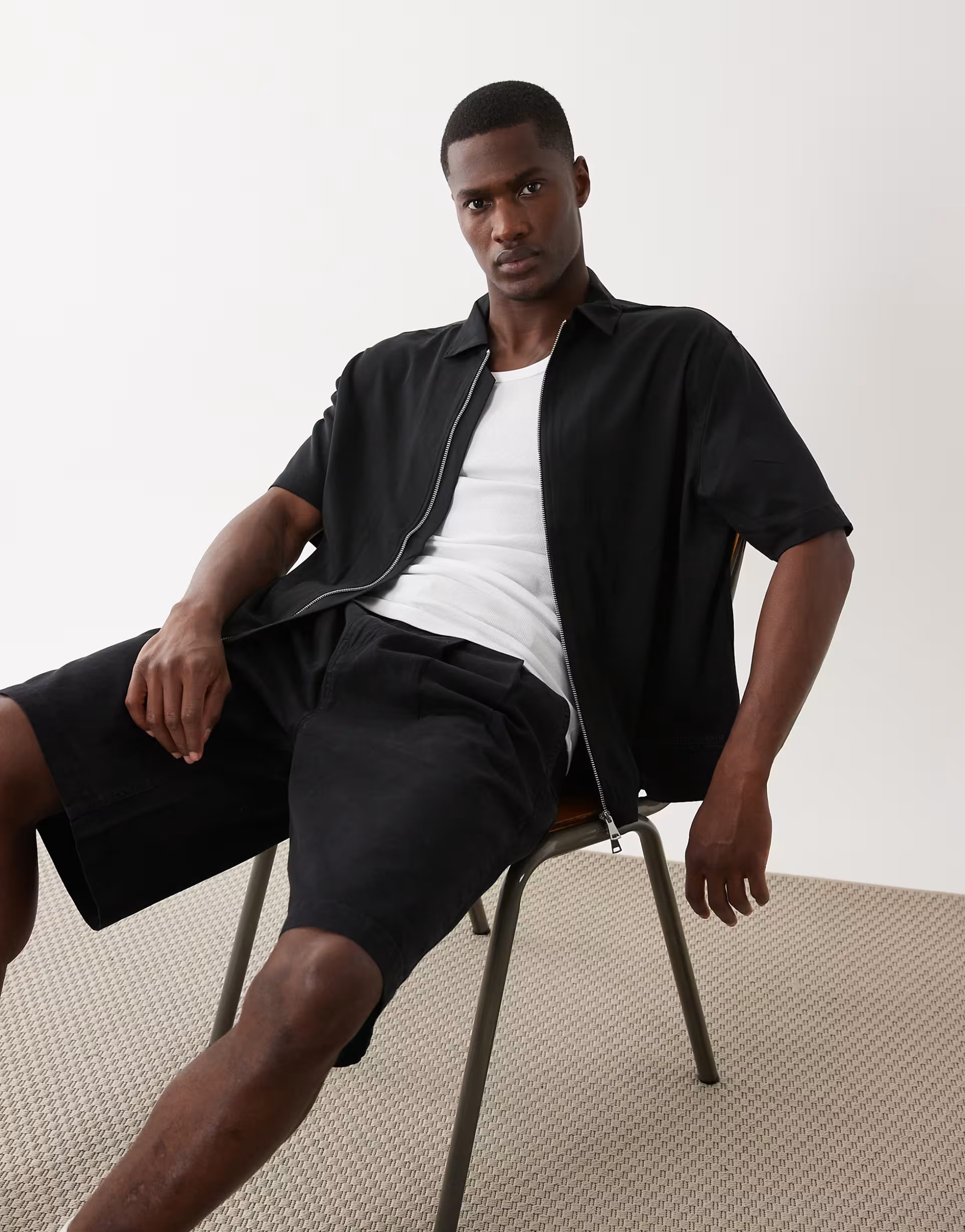 Designed with boxy fit, short sleeves, and a fluid fabric, this ASOS shirt in black is perfect for a casual and relaxed look. The loose silhouette and minimalist design make it versatile for various occasions.