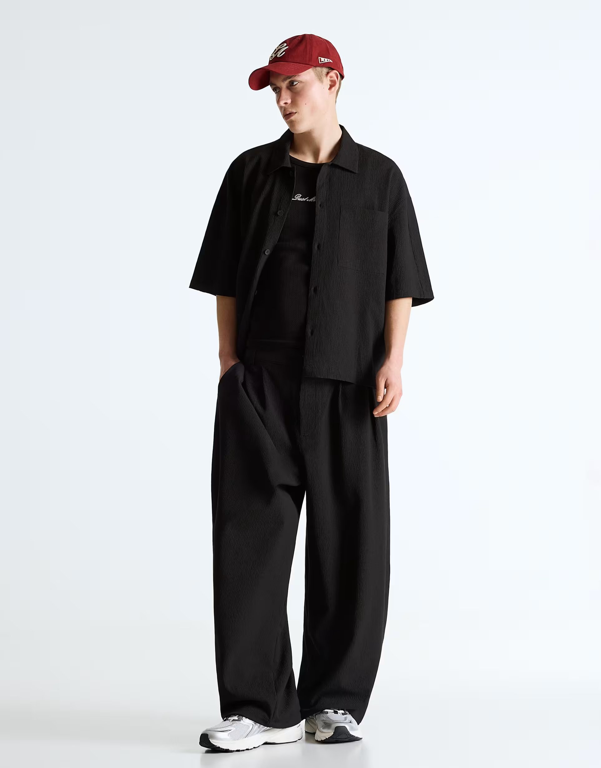 Designed with black and pleated semi-jogger detailing, these trousers offer a baggy fit perfect for casual wear. Made from a blend of comfortable materials, they are ideal for everyday lounging or a relaxed weekend look.