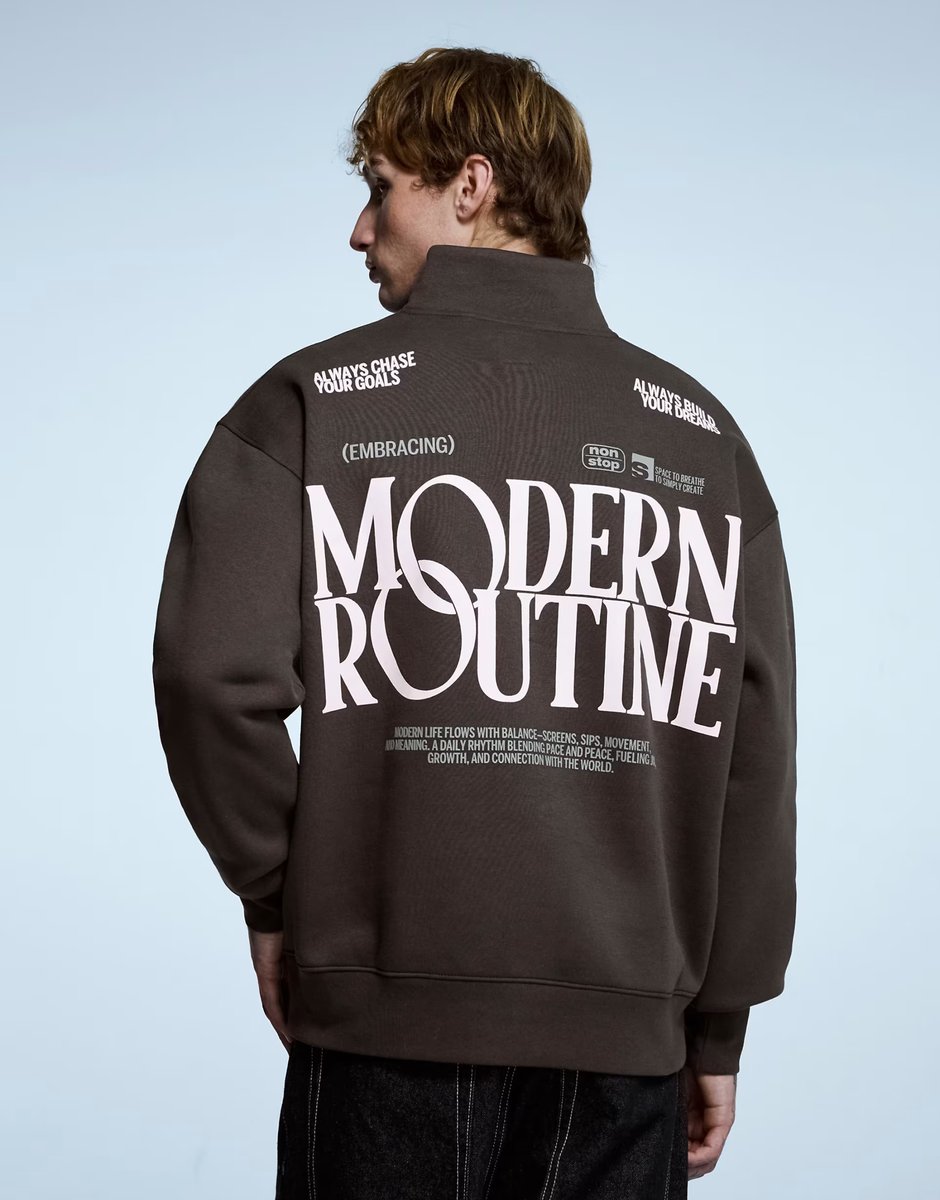 The ASOS Brown Printed Quarter-Zip Sweatshirt is available in sizes XXXL, XXL, XL, XS, L, M, S.