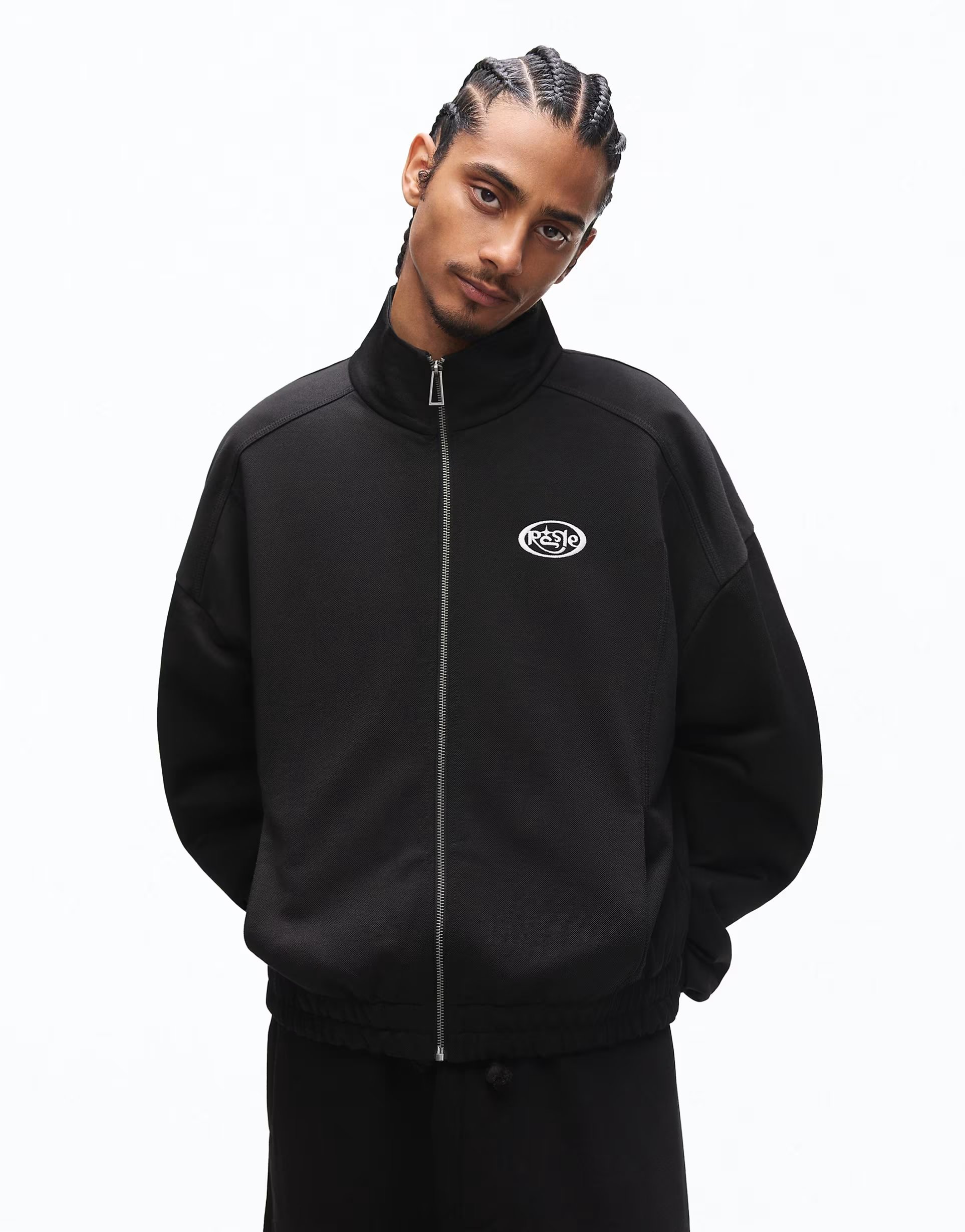 The ASOS Printed Zip-up Sweatshirt in Black is available in sizes XXXL, XXL, XL, XS, L, M, S.