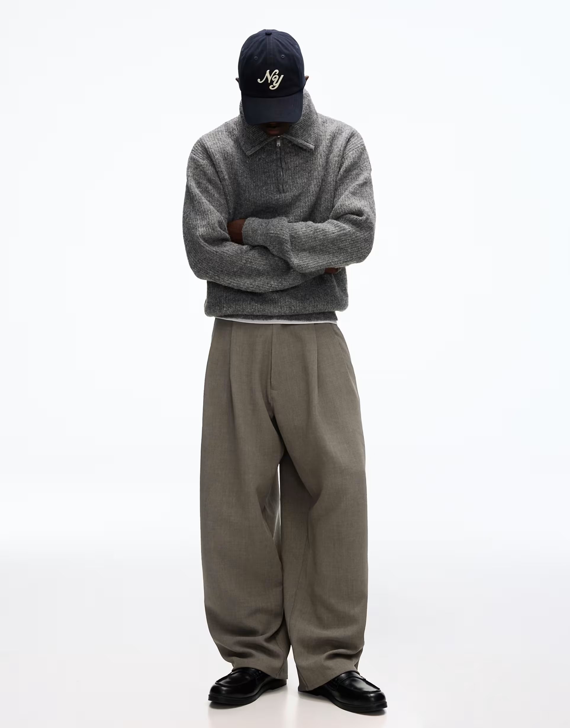 The ASOS Baggy Tailored Fit Trousers in Khaki is ideal for casual, work.