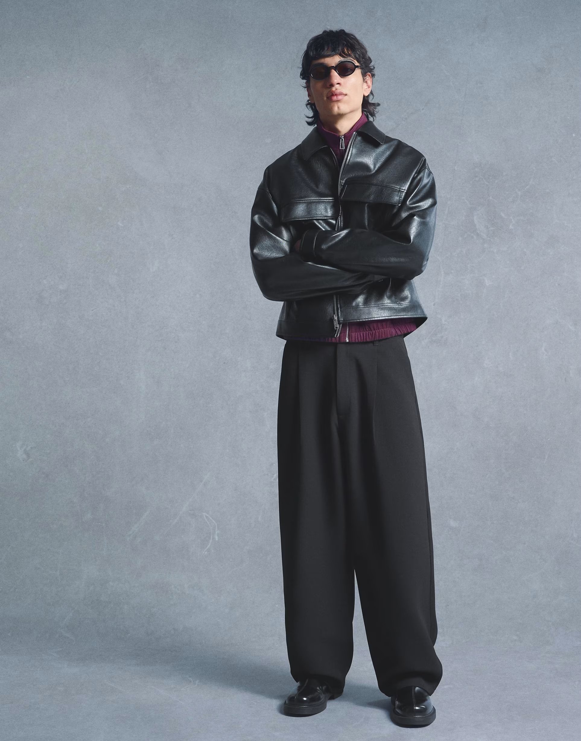The baggy tailored trousers in black are the epitome of relaxed elegance, perfect for casual outings.