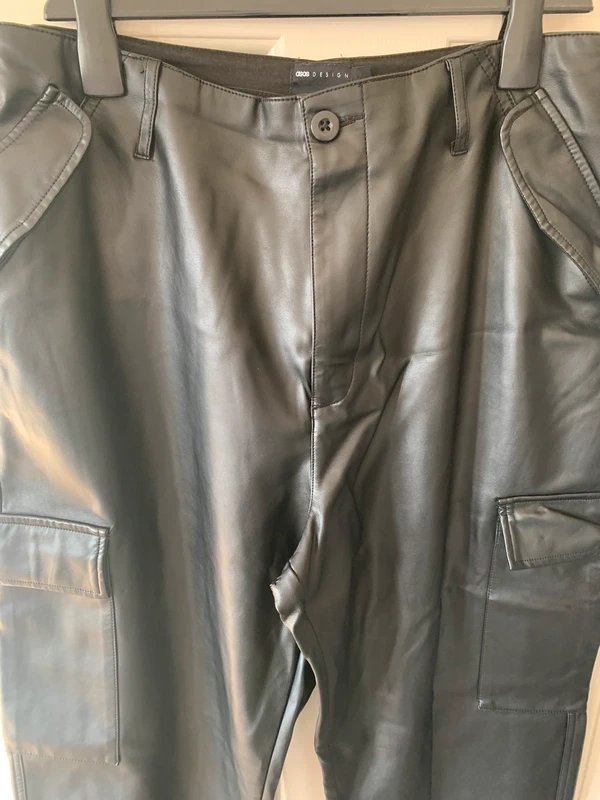 The ASOS Black Faux Leather Cargo Pants is available in sizes L.