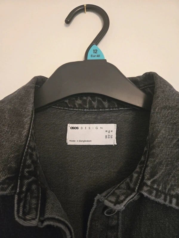 The ASOS Black Denim Mini Dress is available in sizes S.