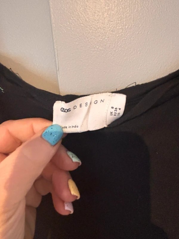 This floral embroidery dress by ASOS is a stunning addition to any wardrobe. The black dress features delicate floral patterns that add a touch of elegance. Perfect for various occasions, this dress is designed to make you stand out.