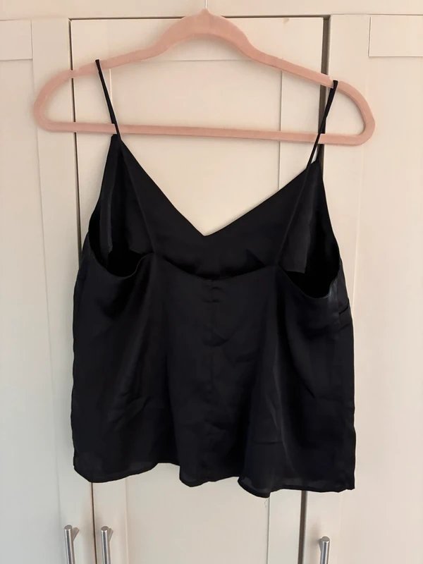 The ASOS Black Silk Cami is available in sizes M.