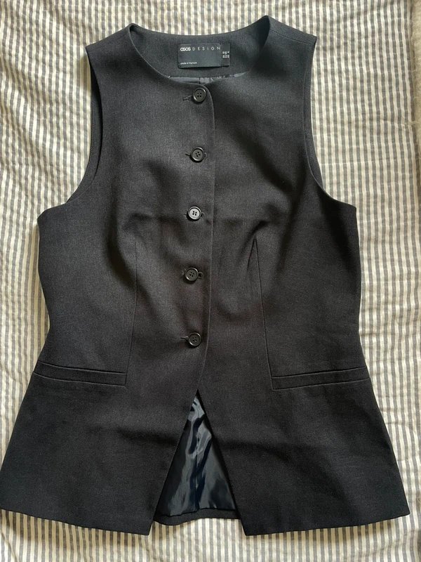 The ASOS Black Waistcoat Top with Button Detail is ideal for casual, smart-casual.