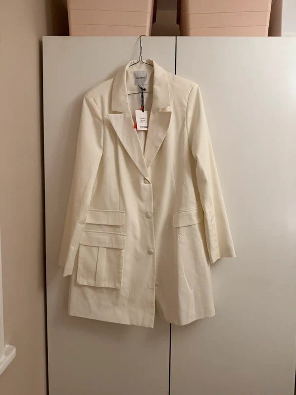 The ASOS White Satin Blazer Dress is available in sizes L.