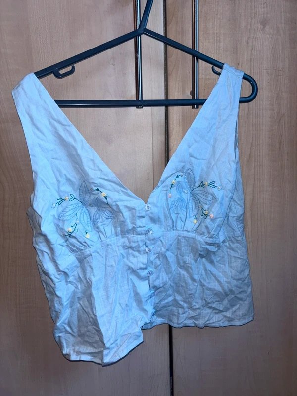 Really pretty detailed light blue embroidered cami from ASOS. A perfect blend of delicate embroidery and a linen-style material, ideal for a light and airy look.