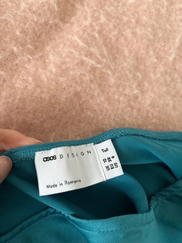 The ASOS Turquoise Satin Midi Skirt TALL is made from satin.