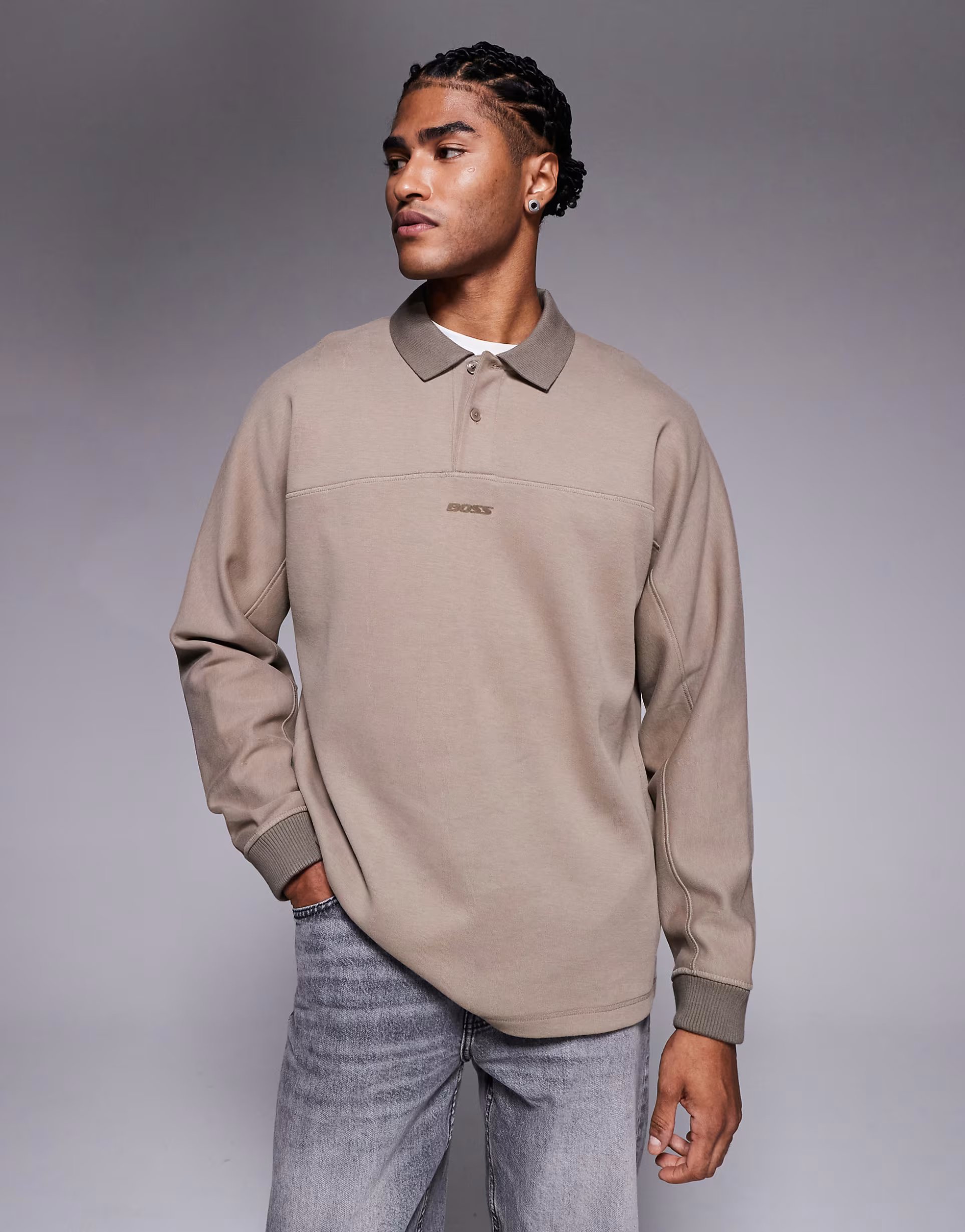 The ASOS Boss Orange Heavyweight Polo Shirt in Mid Beige is available in sizes XXXL, XXL, XL, XS, L, M, S.