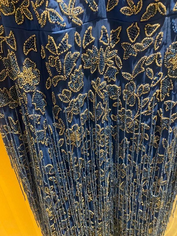 The ASOS [Luxury] Embellished Tassel Hem Dress in Blue is available in sizes L.