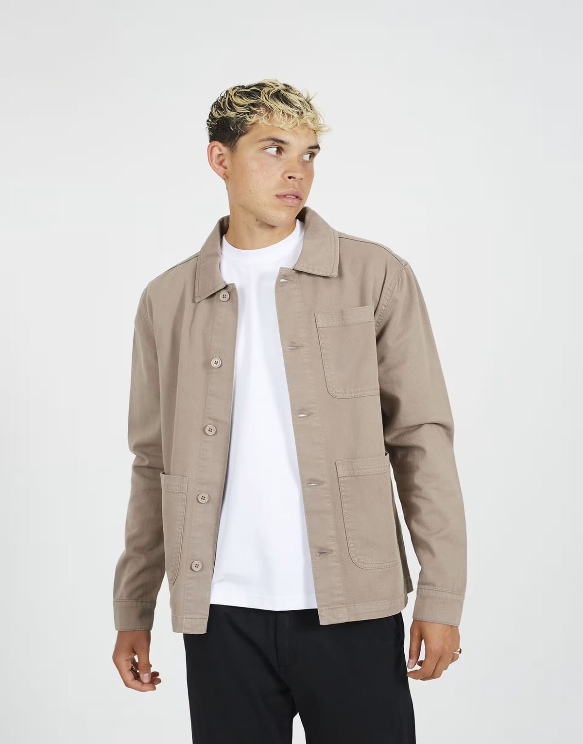 The ASOS Button-through Cotton Shacket in Taupe is available in sizes XXXL, XXL, XL, XS, L, M, S.