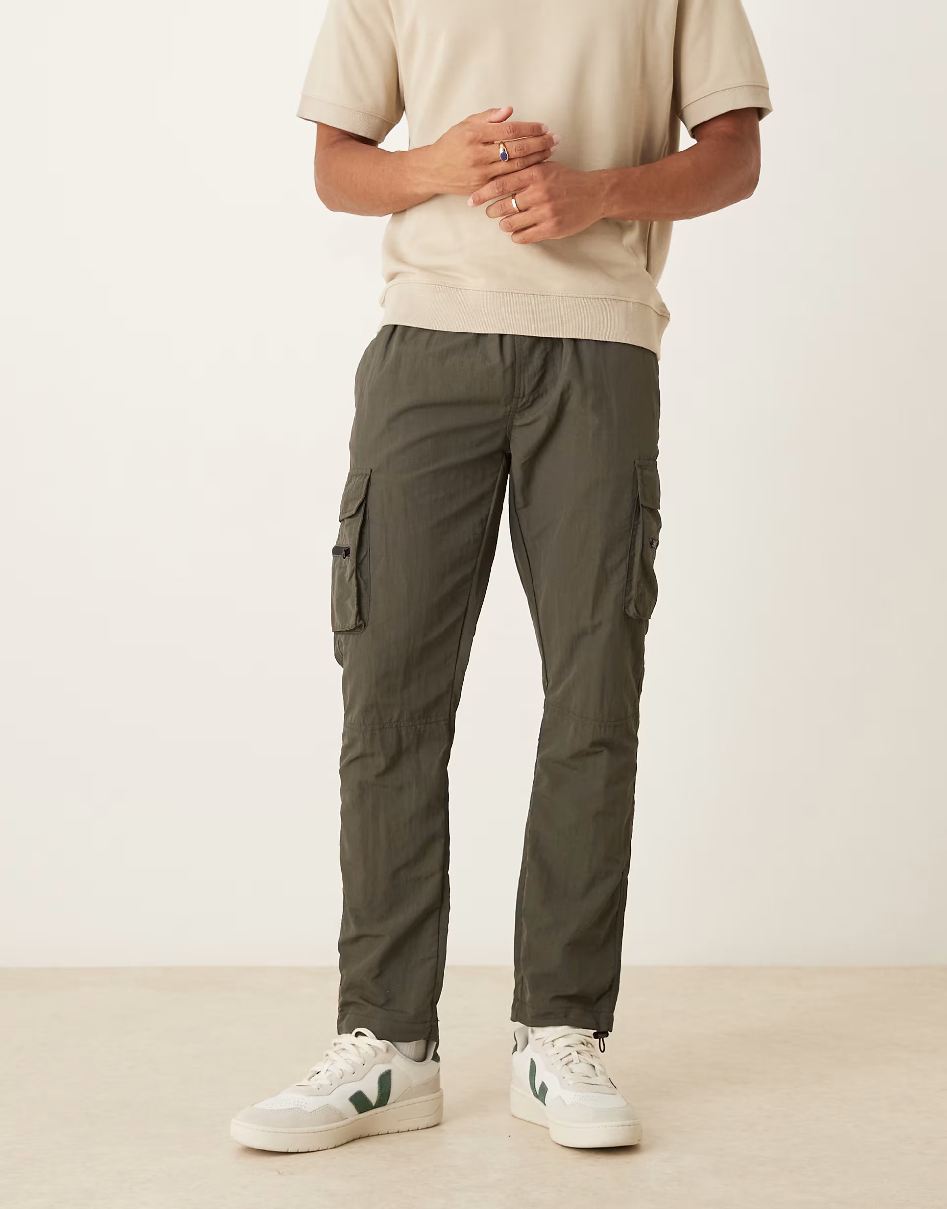 The ASOS Brave Soul Khaki Cargo Trousers with Elasticated Waist is ideal for casual.