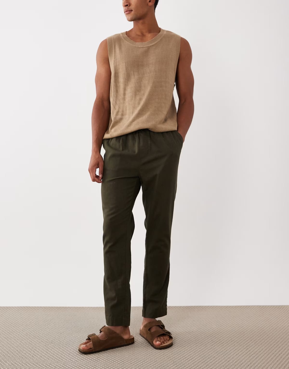 The ASOS Brave Soul Khaki Relaxed Fit Linen Mix Trousers is made from linen, cotton.