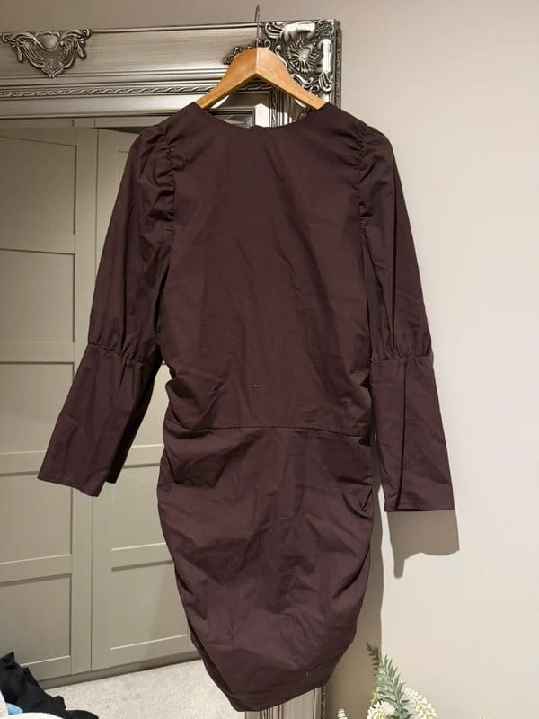 The ASOS Brown Ruched Detail Midi Dress is available in sizes M.